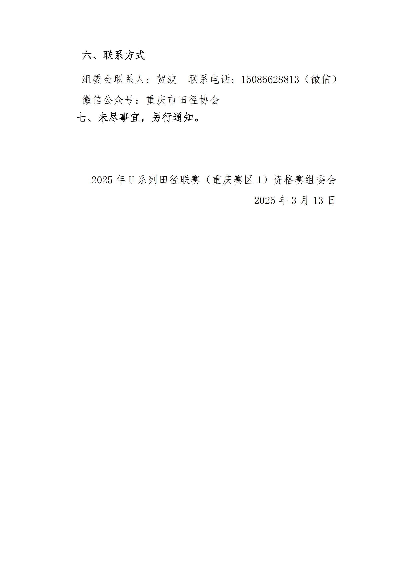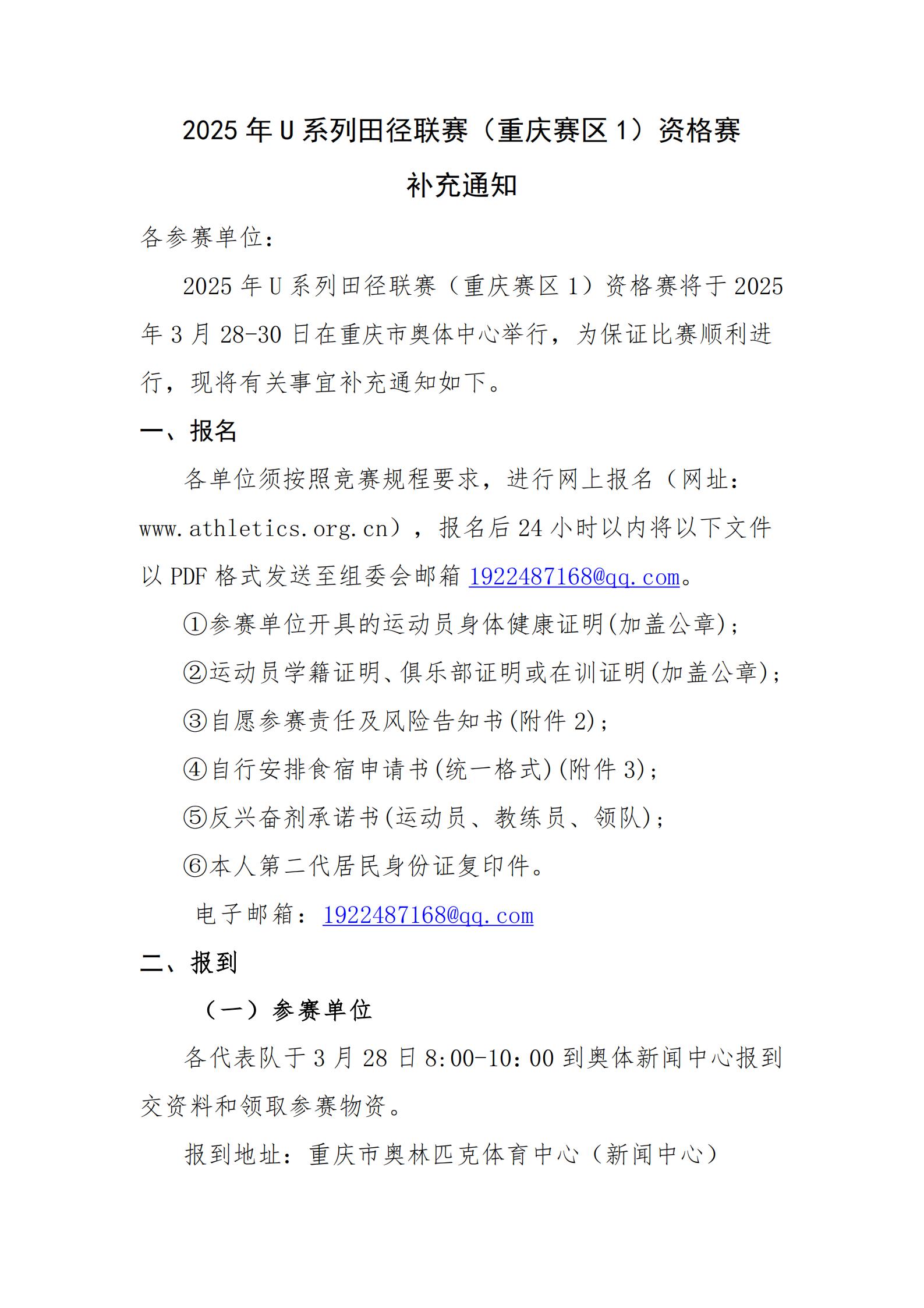 2025年U系列田径联赛(重庆赛区1)资格赛补充通知