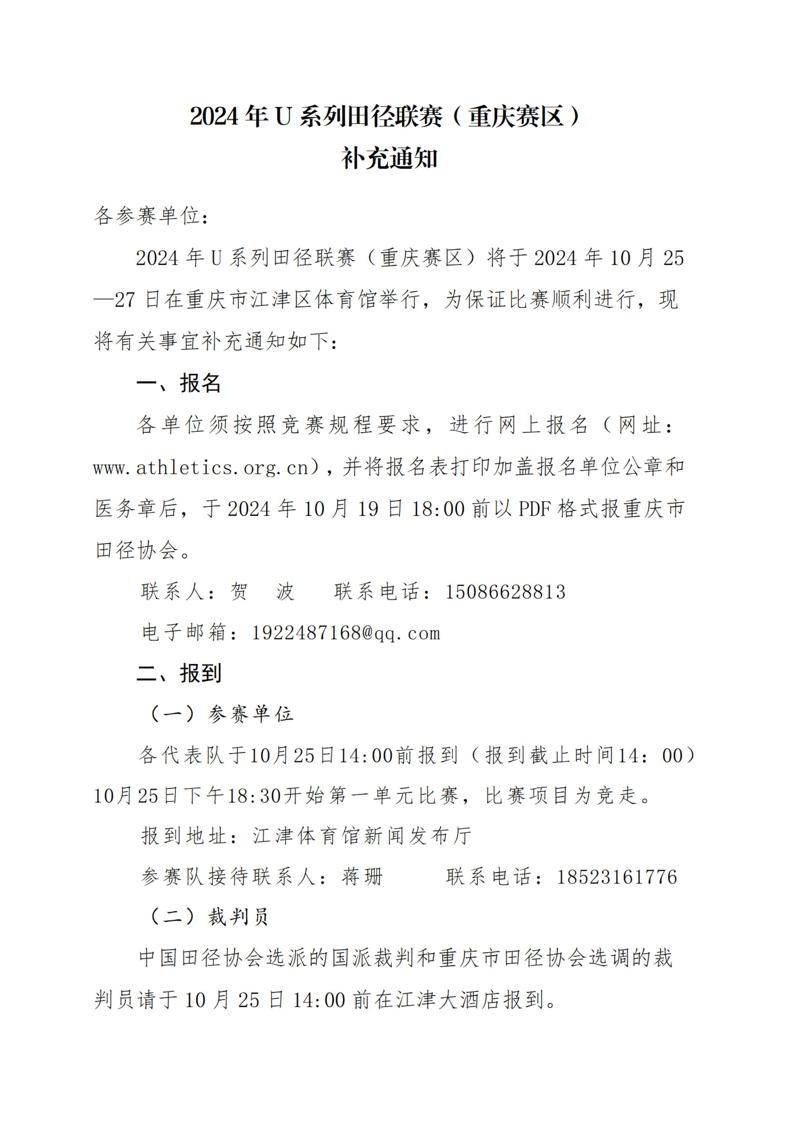 2024年U系列田径联赛(重庆赛区)补充通知